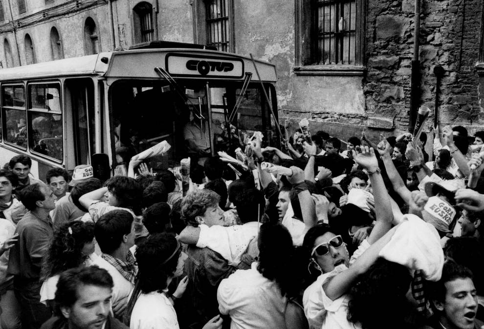 ENCIERRO DE LA VILLAVESA A falta de toros y cabestros, qué mejor que correr delante de la villavesa que, lejos de conocer lo que le esperaba, comenzaba su ruta habitual por el casco viejo.