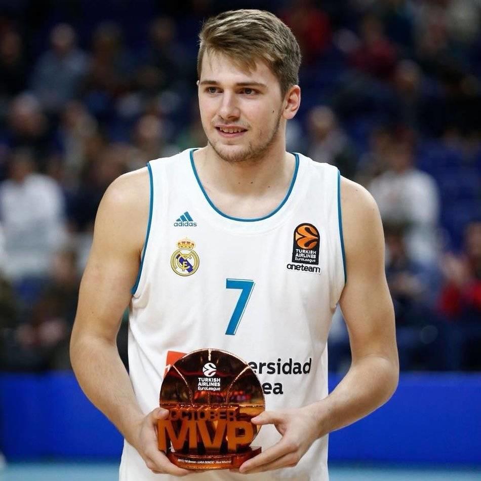 Luka Dončić (Liubliana, 28 de febrero de 1999) es un jugador de baloncesto esloveno, que pertenece a la plantilla de los Dallas Mavericks de la NBA. Con 2,01 metros de altura juega en la posición de base, pero puede jugar tanto de escolta como de alero. |